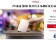 « Les jeunes de 16 ans ont des décisions importantes à prendre et portent la responsabilité de bâtir leur vie future. Ils sont sortis de l’obligation scolaire, ils ont des droits et des obligations juridiques (exemple : ils peuvent payer des impôts et peuvent souscrire certains contrats) alors qu’on les tient éloignés de toute décision politique ».